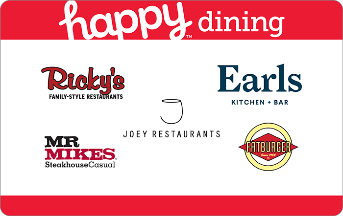 $50 Happy Dining Gift Card: $39.50 from likeacoupon.s3.amazonaws.com Check spelling or type a new query. Maybe you would like to learn more about one of these? We did not find results for: